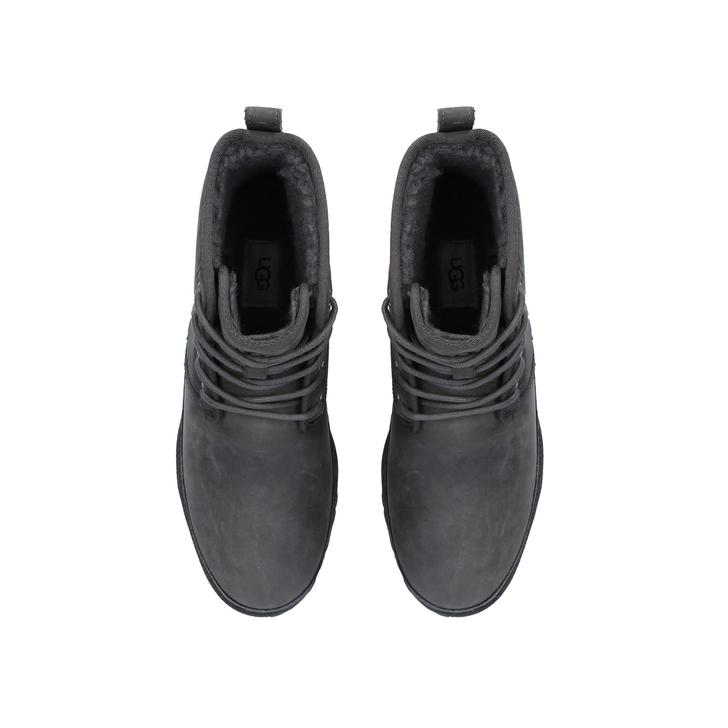 UGG offers a new season wardrobe update in the Harland Lace Up Boot. Featuring suede uppers and a Vibram® outsoles, wool lining and a cushioned insole. Pre-treated to repel moisture and stains, Heat embossed UGG logo to the heel and tongue.