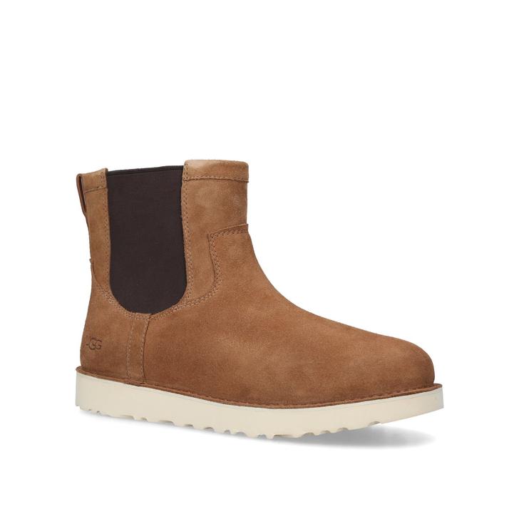 The Campout Chelsea Boot from UGG offers the ultimate in versatile comfort. Featuring soft suede outers built on the same frame as the best-selling Classic Boot and lined with UGGplush™ wool blend. A cushioned outsole and elastic gores allow for easy on-off and a flexible fit.