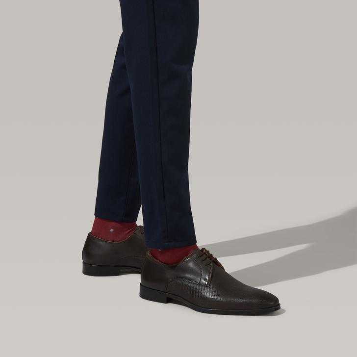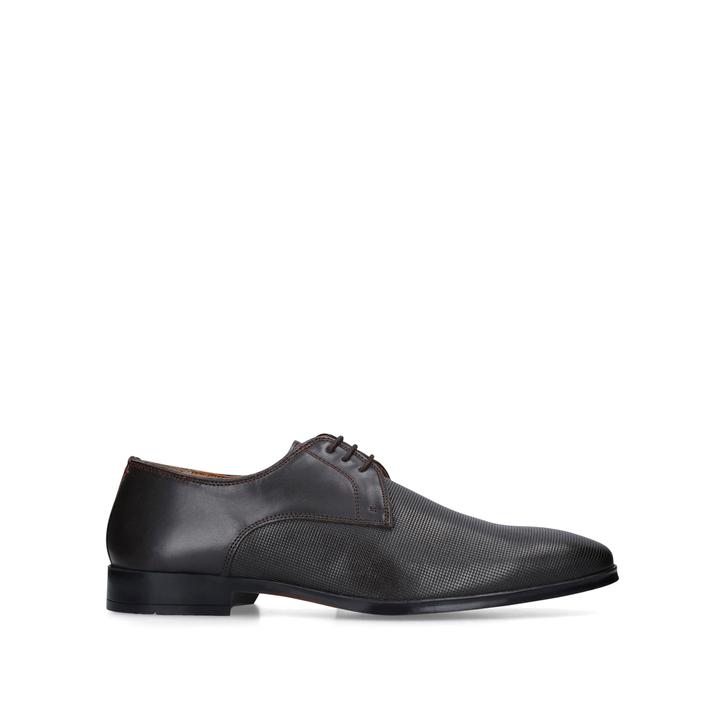 Hybrid styling takes a step towards the formal in KG Kurt Geiger's new Carlton shoe. This inventive spin on the business lace-up is crafted in dark brown and features fine texturing at the forepart. Blind eyelets, tonal laces and a smooth rear section balance the look with a hint of cutting-edge minimalism.