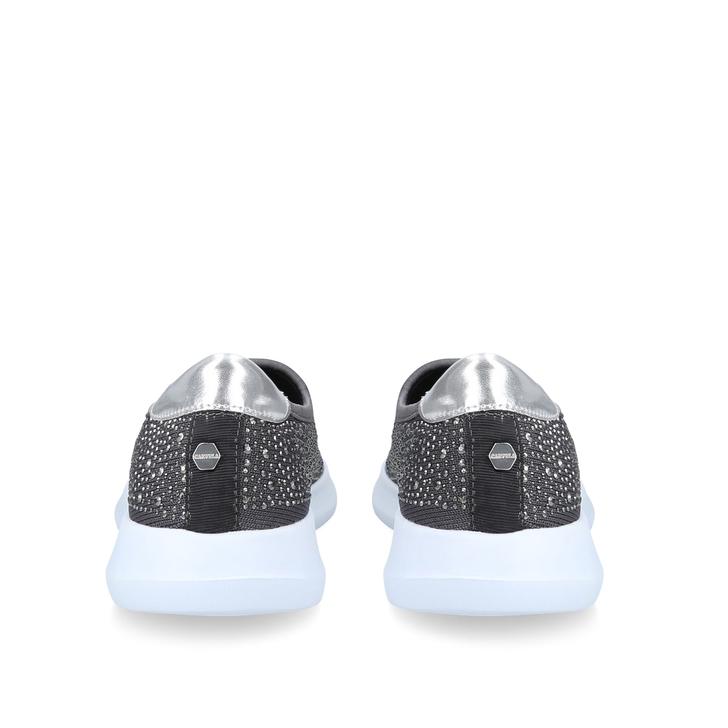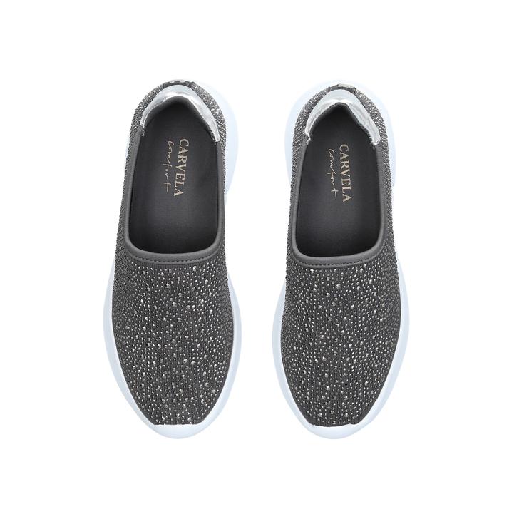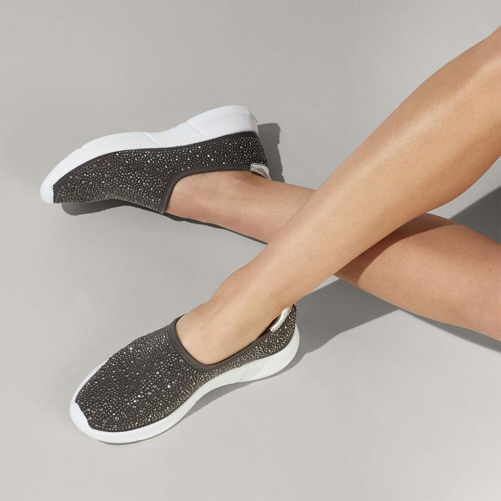 The masters of wearable style present Carla: a fresh spin on Carvela Comfort's bestselling slip-on trainer, now with a grey-fabric upper drenched in glittering gemstones. A super-light sole and extra-padded sock put a spring in every step.