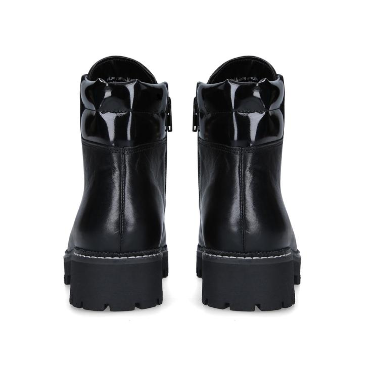 Make light work of autumnal dressing with Carvela's new Stolen boot. This hiking-inspired ankle boot is crafted in black for enduring style and is accompanied by a chunky cleated outsole and secure lacing system.