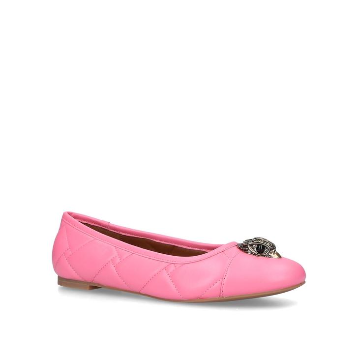 Shake up casual looks with the new ballerina pump Emmy from Kurt Geiger London. Perfect for work to weekend, this slip-on design features pink quilted leather for a modern finish as well as the instantly recognisable Kurt Geiger London eagle-head charm at the vamp.