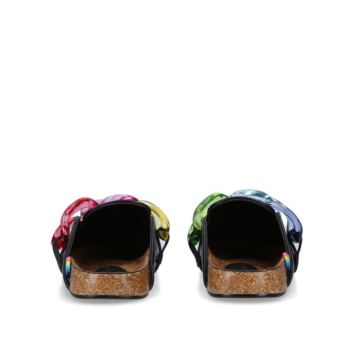 Make a confident statement this season in Kurt Geiger London's fresh spin on the clog. Ozark chain is designed in all black with a contrast rainbow colour chain, finished with the 25mm platform. The ergonomic footbed promises to cup and cushion your feet all day long.