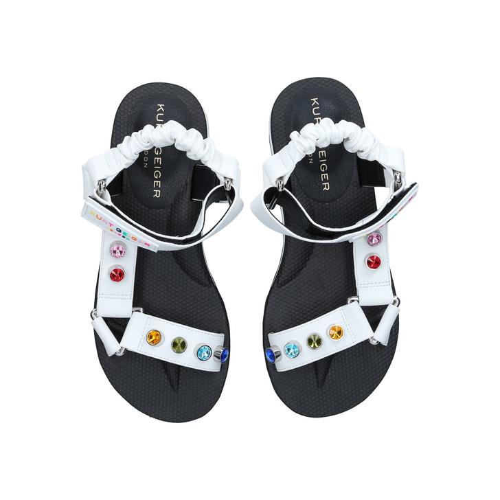 Brimming with new-season energy, the Orion sandal from Kurt Geiger London is guaranteed to draw attention. The upper straps are delivered in white and feature rainbow hued crystal embellishment a pop of colourful interest. The platform sole boosts your look by 40mm without compromising on comfort. Finished with rainbow Kurt Geiger branding.