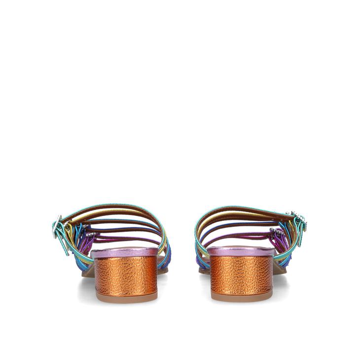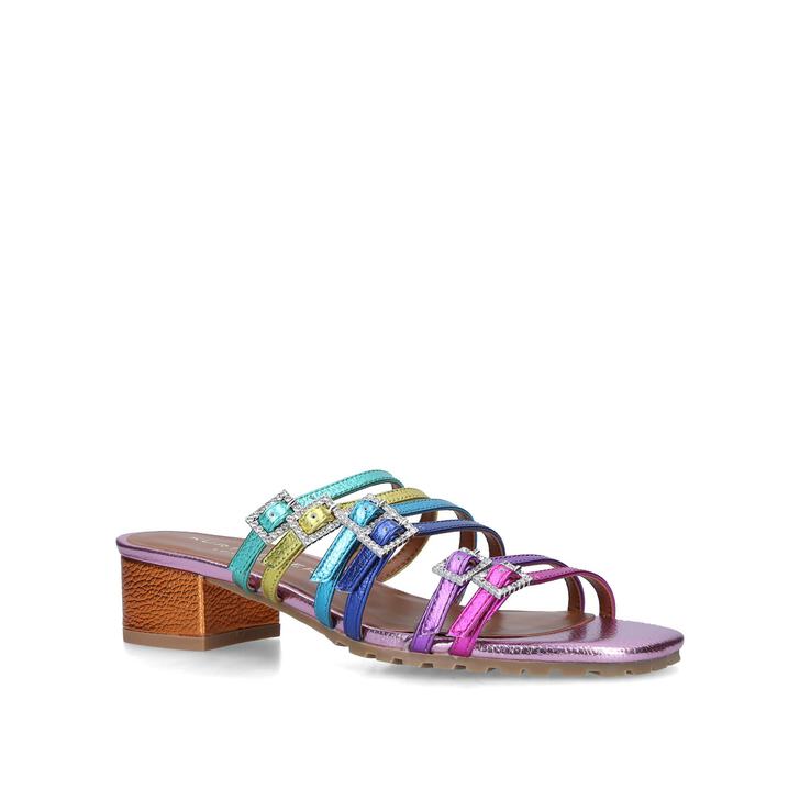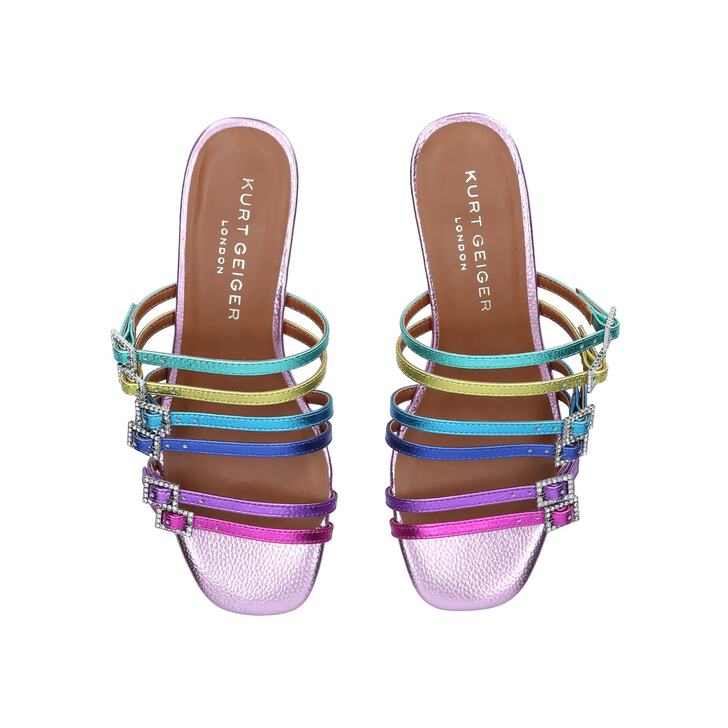 Arriving with an array of rainbow straps, the Pierra Block Mule from Kurt Geiger London is the perfect match with this season's striped leather accessories. Trimmed with cute buckles for a little extra luxe, this feminine style is set on a block 45mm heel to put a relaxed finish to your after-dark glam.