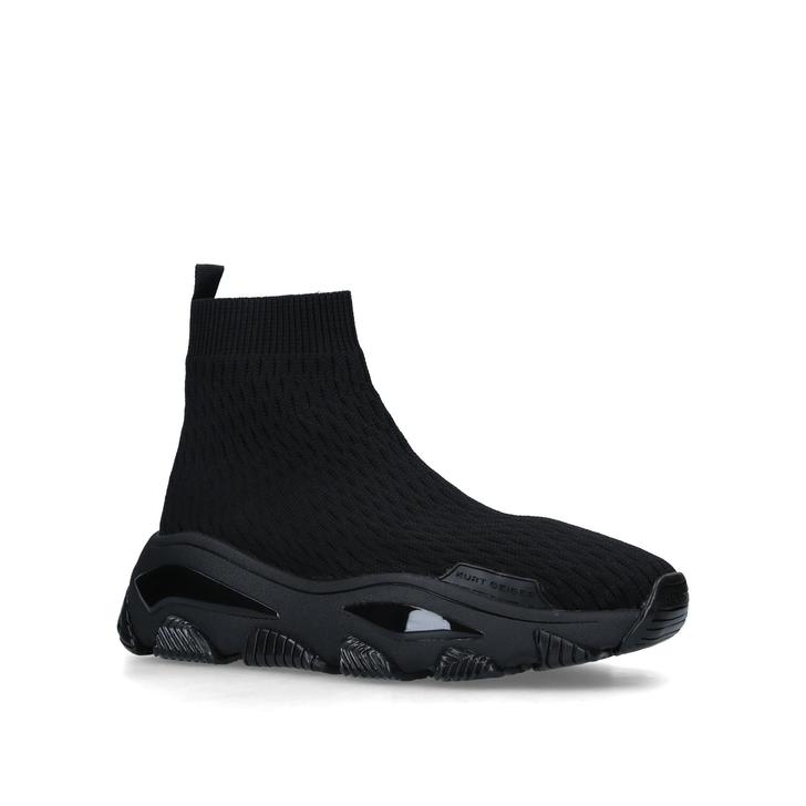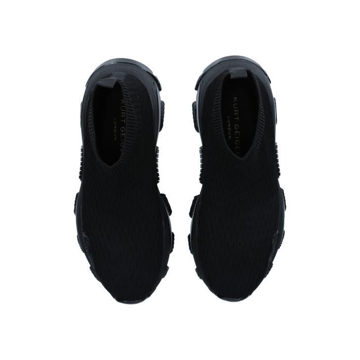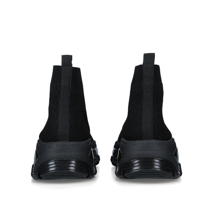 Make a playful statement with your sports-luxe capsule this season with Kurt Geiger London’s irresistible Lettie Knit Sock Drench. Combining the essential knitted sneaker trend with everyone’s love for a chunky profile, this athleisure option features an all black upper and pumped-up black outsole.